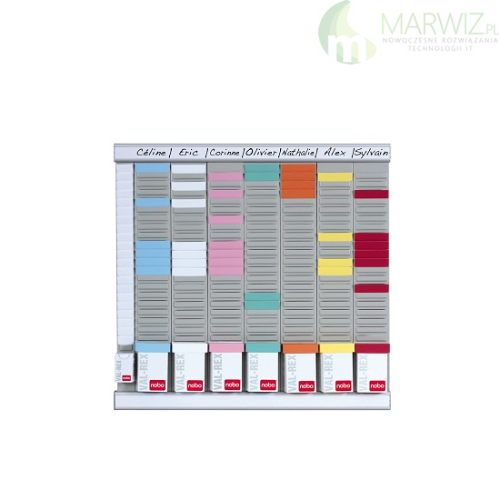 Tygodniowy 7 kolumn z 24 liniami na karteczki T-card 2, jedna kolumna na karteczki T-card 1 W komplecie 7 opakowań karteczek T-card rozmiar 2 i 1 opakowanie T-card rozmiar 1 Wymiary 48 x 48 cm W komplecie zestaw do montażu na ścianie |