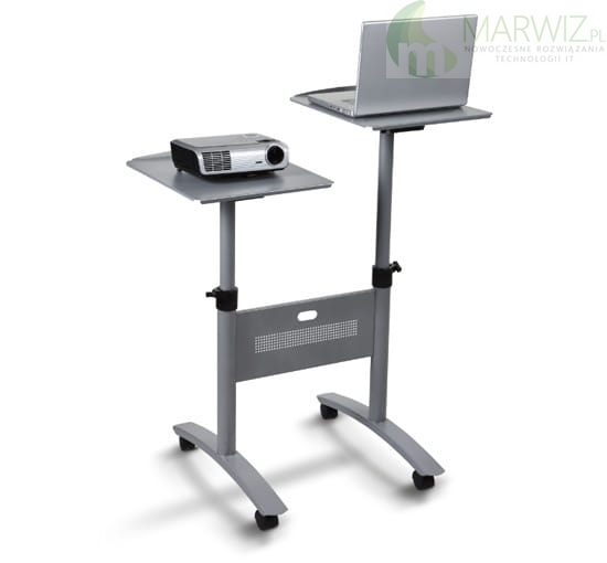 Stolik multimedialny przystosowany dla laptopów i projektorów DLP Nobo. Wózek multimedialny, zawierający dwie niezależne platformy – jedną na laptopa, drugą na projektor. Możliwość przechylania i obrotu obu platform w zakresie 360°. Możliwość przymocowania laptopa i projektora do wózka przy użyciu blokady Kensington.